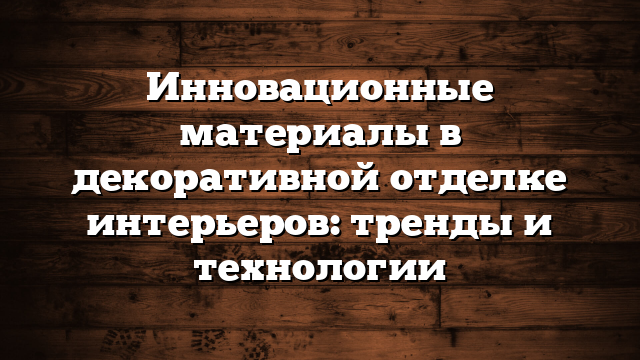 Почему важны инновационные материалы в интерьерной отделке?